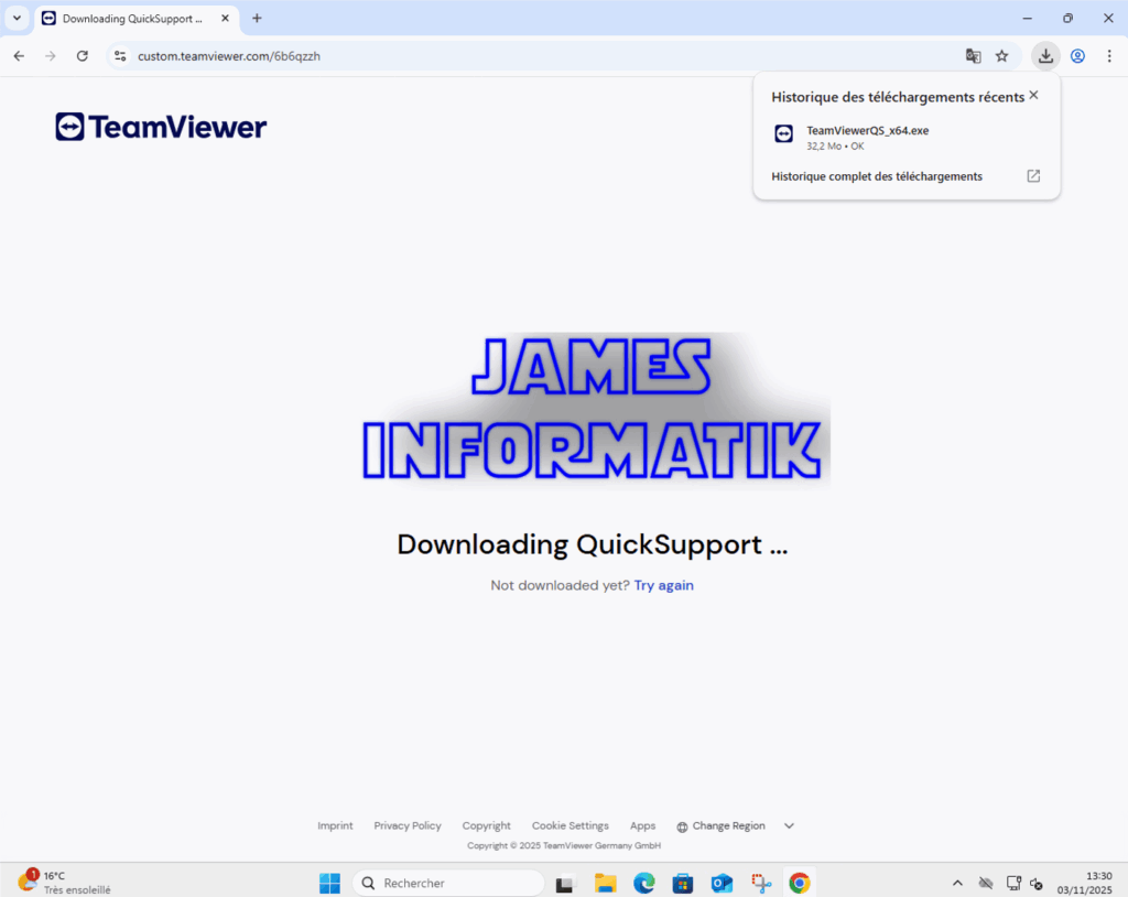 Le navigateur par défaut va s’ouvrir pour procéder au téléchargement ici Google Chrome,